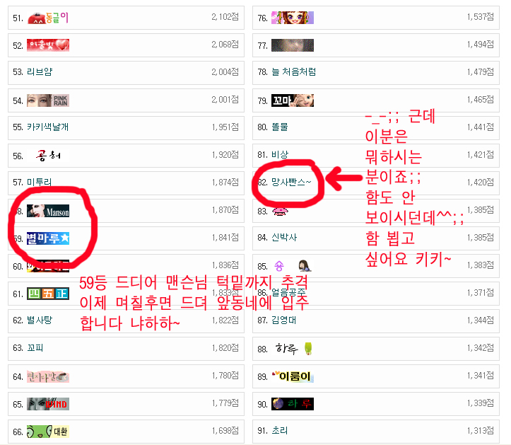 꽤 마니 올라갔구나.... 저번에 70위인가?? 그때까지 올라간건 봤었는데....emoticon_011