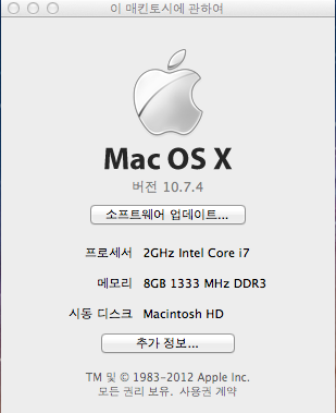 상태는 극상이라고 보시면됩니다. 세팅은 맥오에스 라이온 깔아놓은 상태구요.