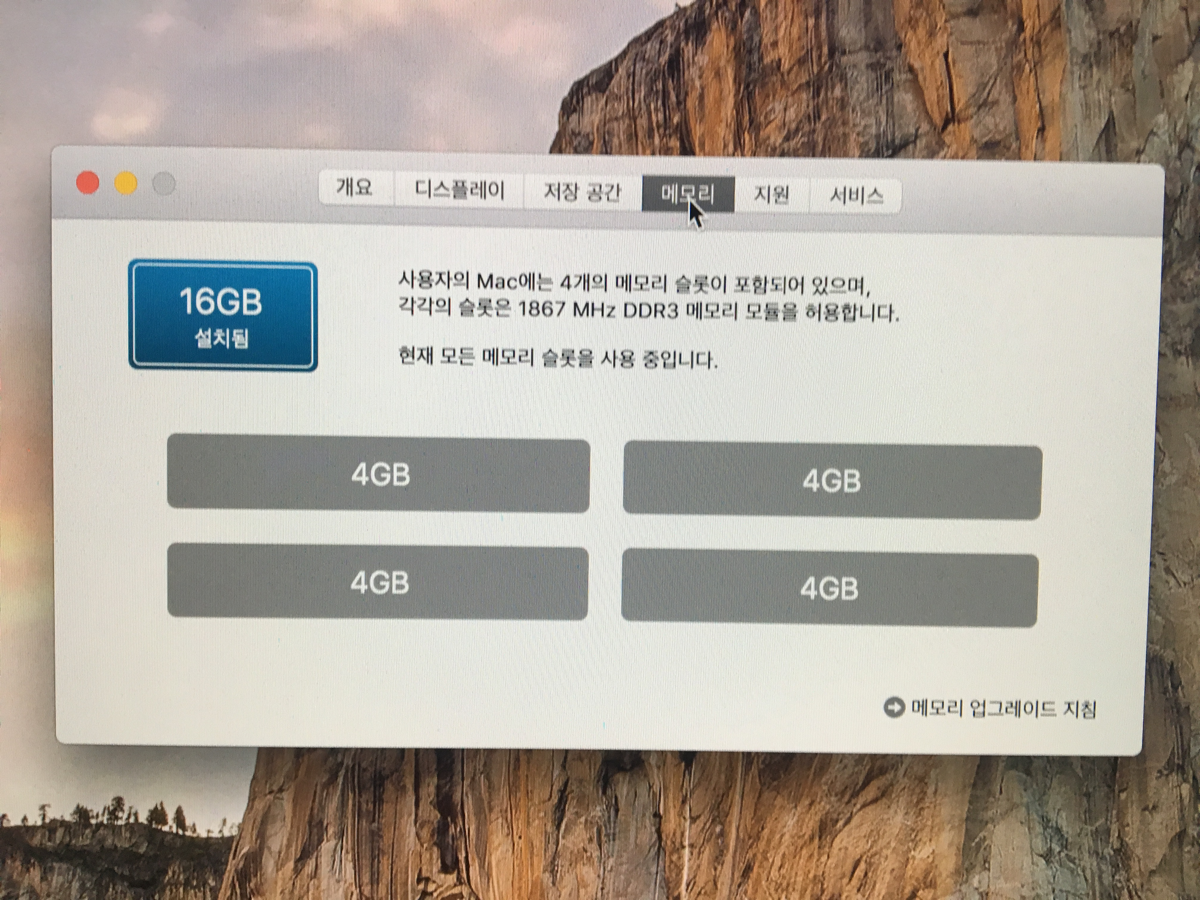 메모리 16GB 1867 MHz DDR3 (4GB x 4개)