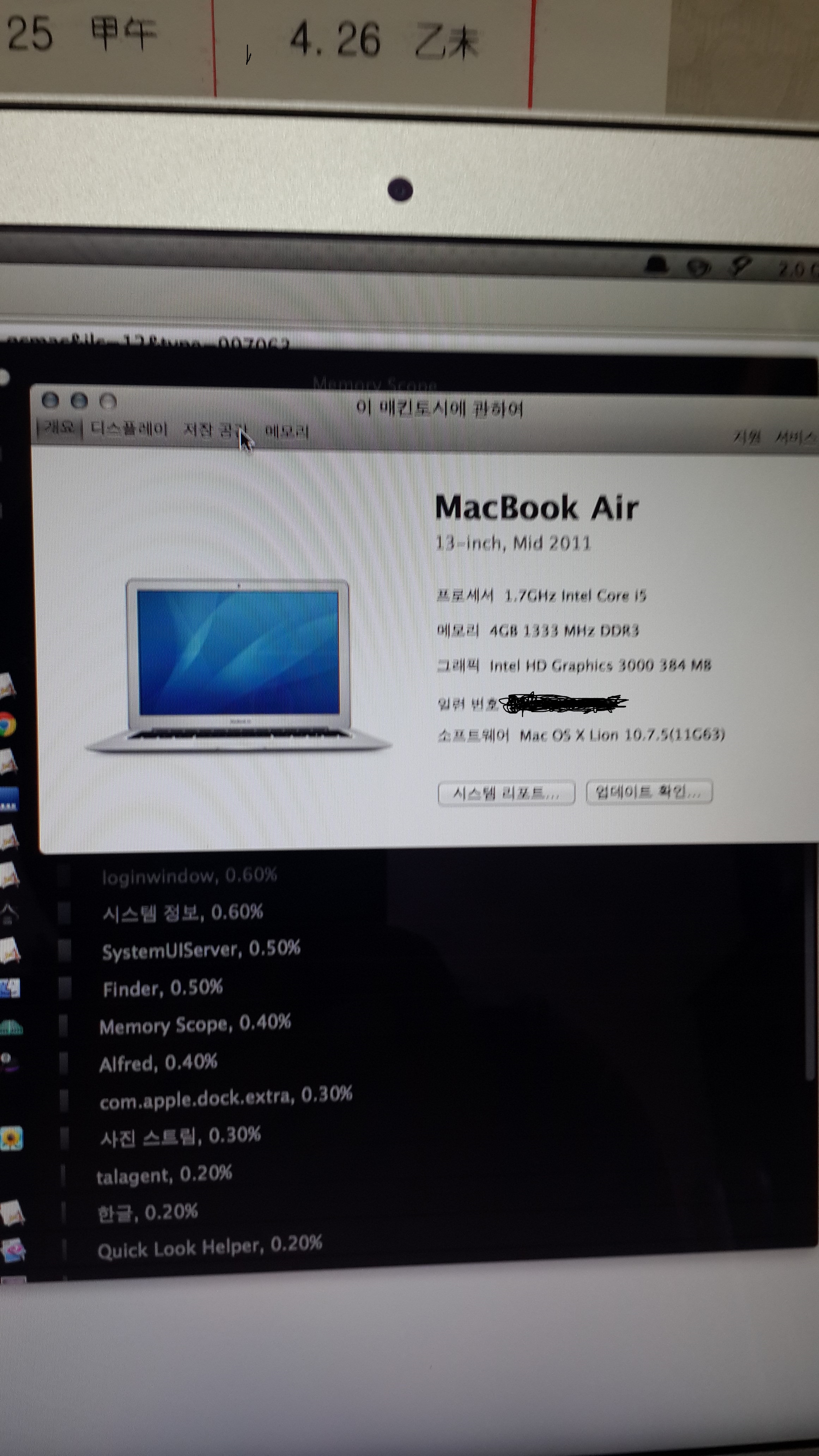 맥북에어 2011 고급형 13인치 256ssd 4RAM 싸게 내놓습니다