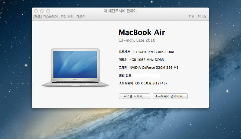 13인치 2010 Late 맥북에어 고급형입니다