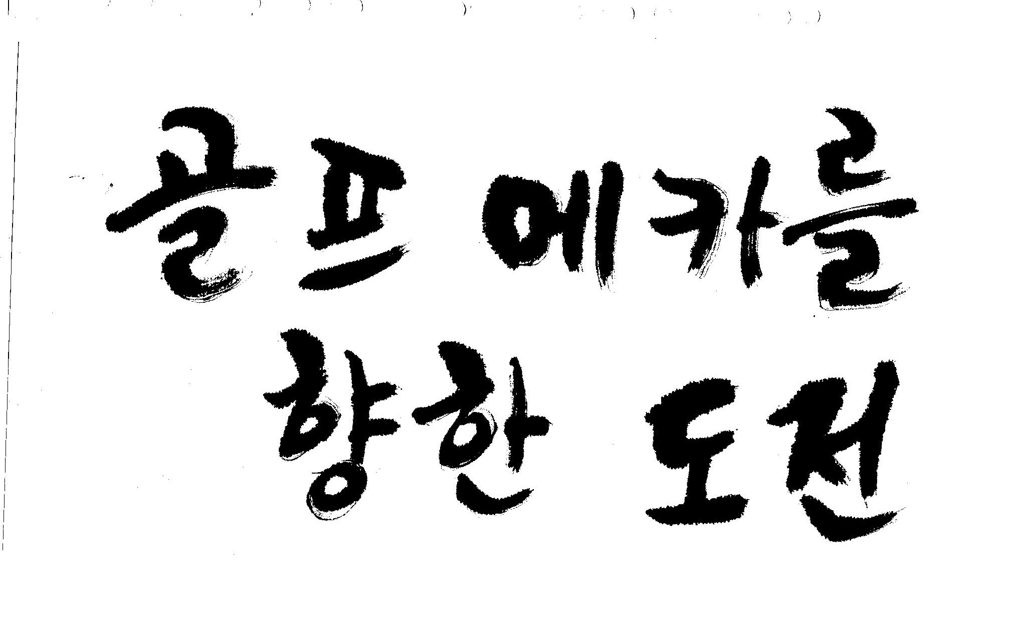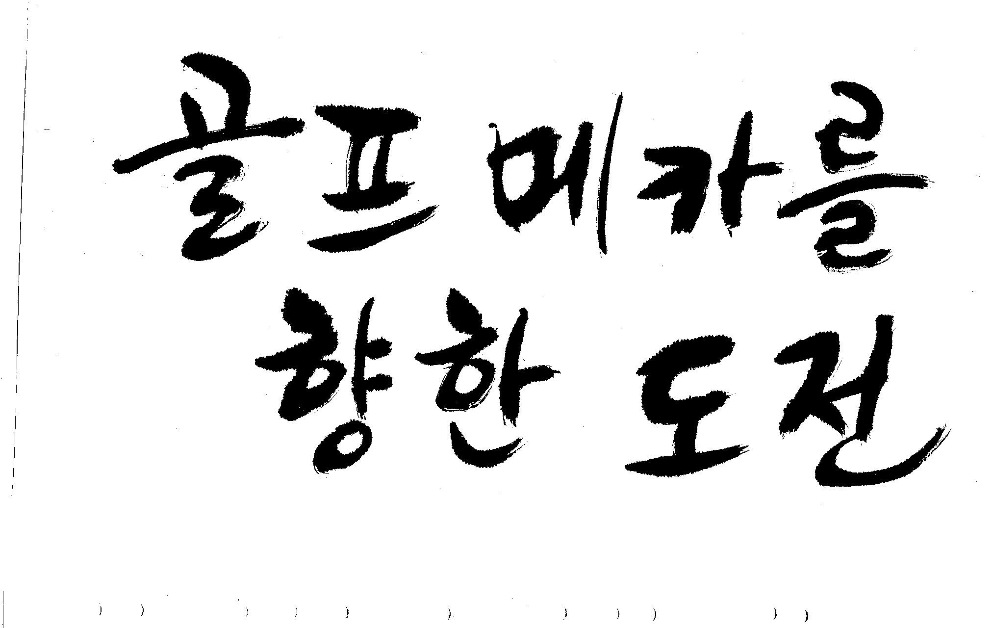 우경의 행복한 캘리세상-골프메카 김철호 일반 0 8918 2009.07.18 10:25 리듬감을 최대한 살리고 ㅡ 스포츠의 운동감과 밝음 기교섞인 획을 배제--일반적인 느낌 굵기변화를 통하여 도전 낱말을 강조 스타일은 비슷하지만 ...한 사람이 썼으니까 ㅎㅎㅎ 서로 다른 글꼴을 올린 것은... 비교하여 보시고... 편집자에게 선택권을 주는 것입니다